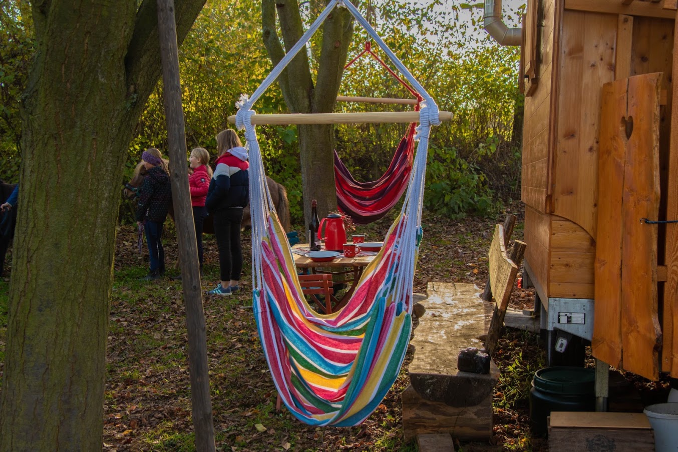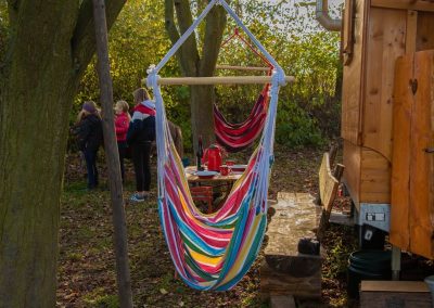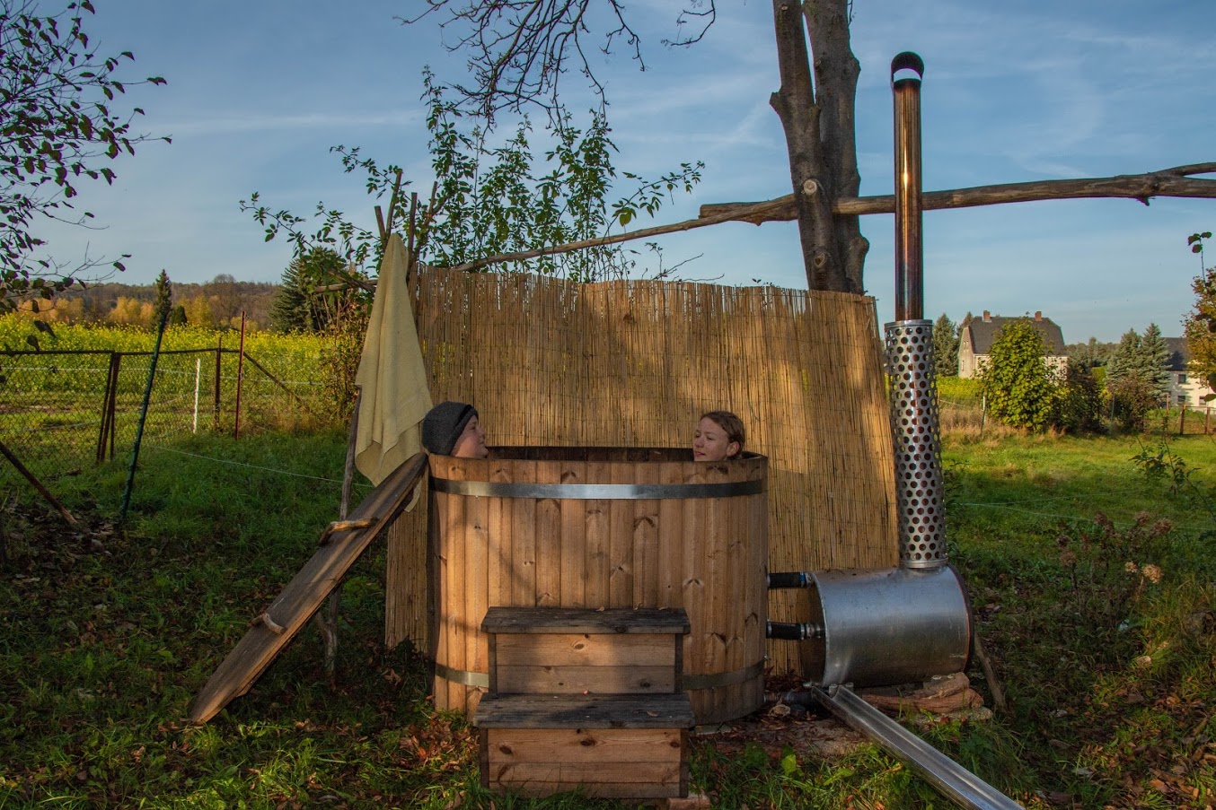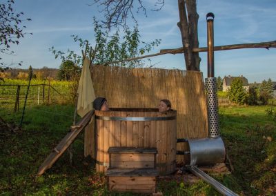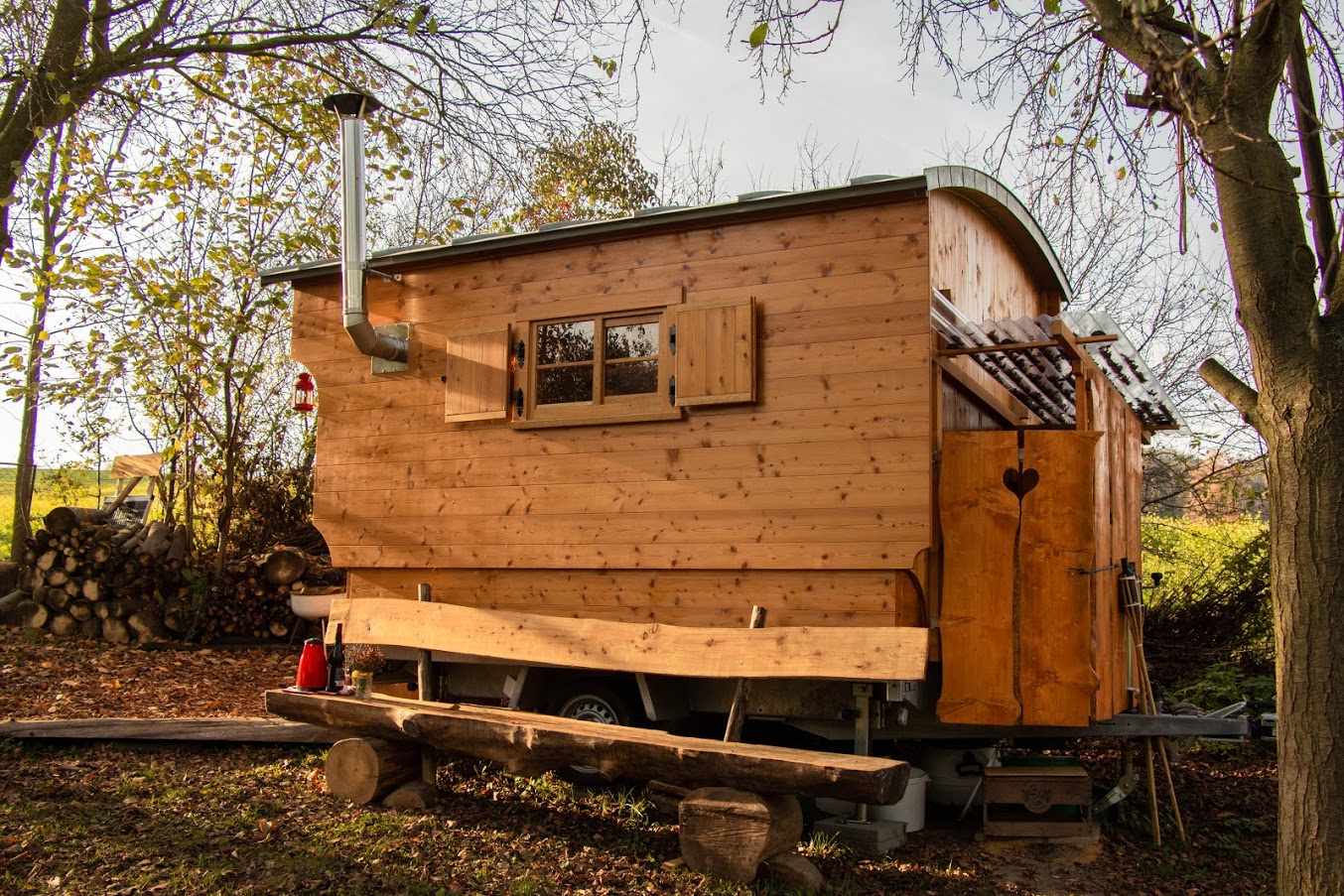 Es stehen dir Solarstrom und Trinkwasser zur Verfügung. Der Hotbot kann mit Bachwasser befüllt werden. An kühlen Abenden kannst du den kleinen Kaminofen im Schäferwagen oder eine Lagerfeuerstelle nutzen.